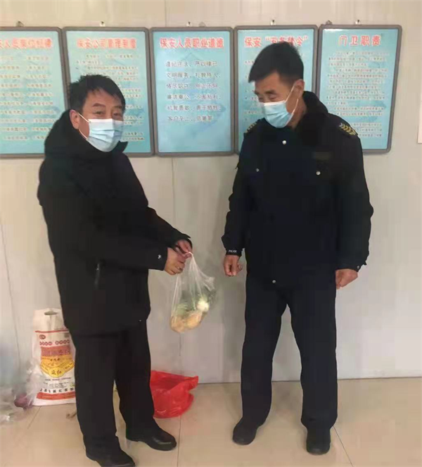 1月10日,因為疫情防控,公務(wù)倉的兩名隊員被隔離在崗位上。中隊長程永明得知情況后很是擔(dān)心隊員們的生活,害怕隊員們?nèi)甜嚢ゐI,于是他連夜從家中拿些生活用品送到公務(wù)倉崗點隊員手中,囑咐他們安心工作。隨后的日子里程永明定時把生活用品送到崗點,隊員們看到領(lǐng)導(dǎo)的關(guān)心,非常感動,他們表示讓分公司領(lǐng)導(dǎo)放心,一定保護好客戶的財產(chǎn)安全。
