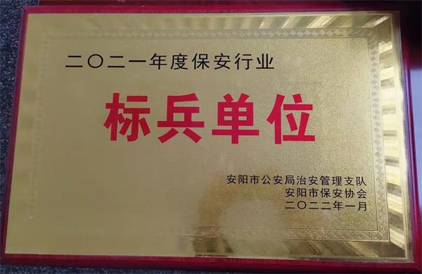 公司榮獲“2021年度保安行業(yè)標兵單位”榮譽稱號