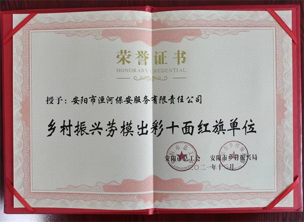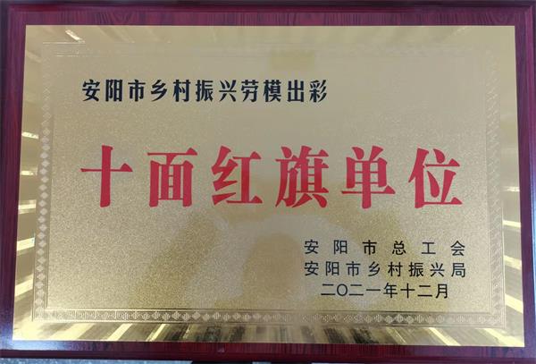 公司榮獲2021年安陽(yáng)市鄉(xiāng)村振興勞模出彩“十面紅旗單位”榮譽(yù)稱(chēng)號(hào)