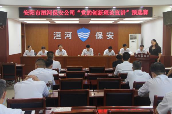 為深入學(xué)習(xí)貫徹習(xí)近平新時代中國特色社會主義思想和黨的十九大及歷次全會精神,推動黨的創(chuàng)新理論入腦入心,團結(jié)引領(lǐng)廣大職工堅定跟黨走、建功新時代,激勵全體洹河保安人以更加昂揚的精神狀態(tài)迎接黨的二十大勝利召開,2022年5月19日下午,公司黨委舉辦“黨的創(chuàng)新理論宣講”預(yù)選賽,黨委書記、董事長、總經(jīng)理王高峰,黨委委員、副總經(jīng)理魏東到會觀摩,比賽由黨委副書記張錫軍主持。
