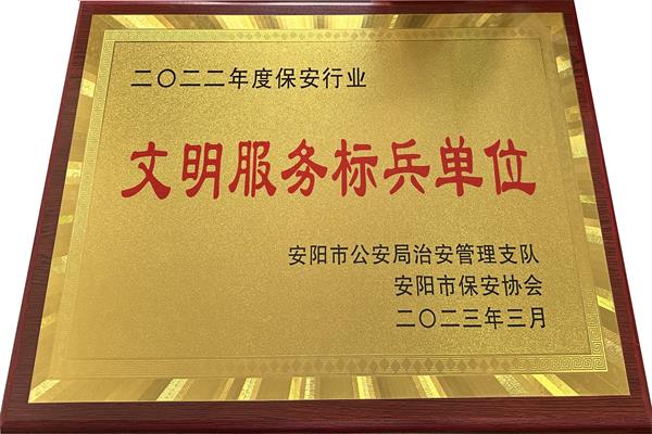 再接再厲 再創(chuàng)佳績——公司榮獲“2022年度安陽市保安行業(yè)文明服務(wù)標(biāo)兵單位”
