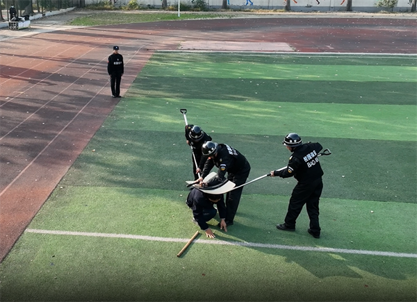 此次考核由公司副總經(jīng)理李樞林擔(dān)任總指揮,考核內(nèi)容為人防分公司消防技能、校園反恐防暴演練、文明禮儀崗、交通指揮手勢、校園鋼叉術(shù)、人防保安理論常識,守押分公司消防技能、槍支拆裝與維護(hù)、車輛輪胎更換、防搶劫預(yù)案、守押理論常識,特保大隊(duì)消防技能、警棍術(shù)、處突演練、文明禮儀及安檢、特保理論常識??己朔绞揭源箨?duì)為單位,分科目、分地點(diǎn)、分區(qū)域進(jìn)行考核。
