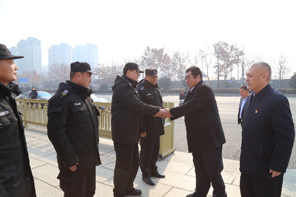 王保友一行人分別來到特保大隊文字博物館中隊、市監(jiān)委中隊看望正在執(zhí)勤的保安隊員,詳細了解公司隊員的工作生活情況,對公司保安員在維護社會穩(wěn)定方面付出的辛勤努力給予肯定,希望大家能夠勇挑重擔、再接再厲,在行業(yè)發(fā)展、警保聯(lián)動、維護社會穩(wěn)定等方面發(fā)揮更大作用。