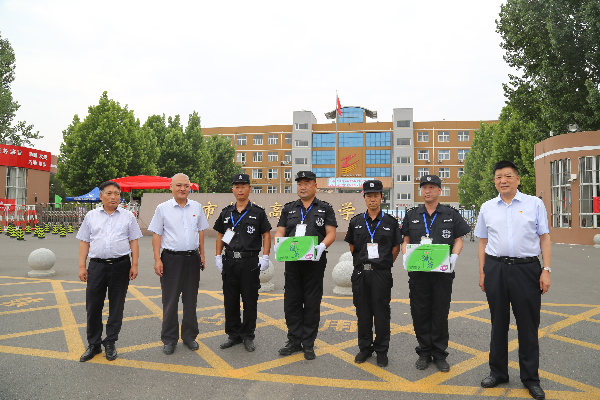 在考點執(zhí)勤現(xiàn)場,王高峰和其他公司領(lǐng)導詳細詢問了執(zhí)勤及安全保衛(wèi)工作部署情況,實地察看了考點的安全保衛(wèi)措施和情況,并代表公司黨委向堅守崗位、忠實履職、積極為考生及家長提供服務的一線執(zhí)勤保安員致以問候,為他們送上綠茶等慰問品。