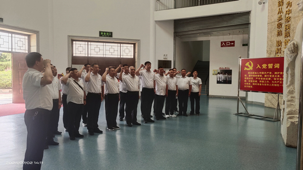 活動(dòng)中,全體黨員干部在莊嚴(yán)肅穆的氛圍中,面對(duì)鮮紅的黨旗,整齊列隊(duì),共同重溫入黨誓詞,展現(xiàn)了新時(shí)代共產(chǎn)黨員的風(fēng)采和決心。