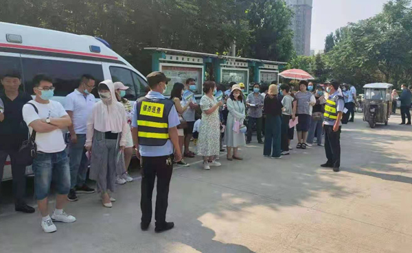 據(jù)帶隊(duì)領(lǐng)導(dǎo)介紹,巡防隊(duì)員早上6點(diǎn)半就到崗位維持秩序。這幾天,氣溫較高,隊(duì)員克服執(zhí)勤時(shí)間長(zhǎng),天氣炎熱的不利影響,精神抖擻為轄區(qū)居民測(cè)體溫、做登記,指揮排隊(duì)、車(chē)輛有序停放,引導(dǎo)注射疫苗人員按序進(jìn)行,為轄區(qū)居民提供強(qiáng)有力保障,為健康保駕護(hù)航。