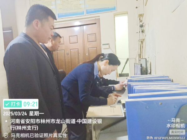 3月24日上午9時左右,林州市公安局治安大隊民警郝白山一行人到七大隊農商行和建行中隊檢查守庫槍支工作。各中隊副隊長全程陪同檢查。