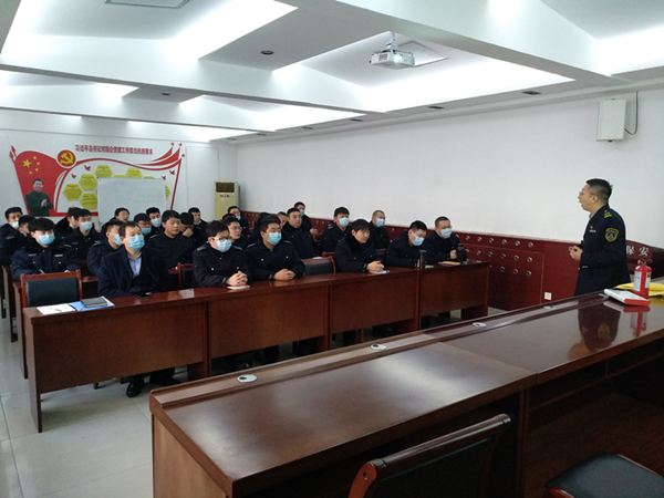 2021年1月5日下午,守押六大隊(duì)組織隊(duì)員聆聽(tīng)消防安全知識(shí)講座,安陽(yáng)市社安消防科技有限公司教官馬曉主持講座。