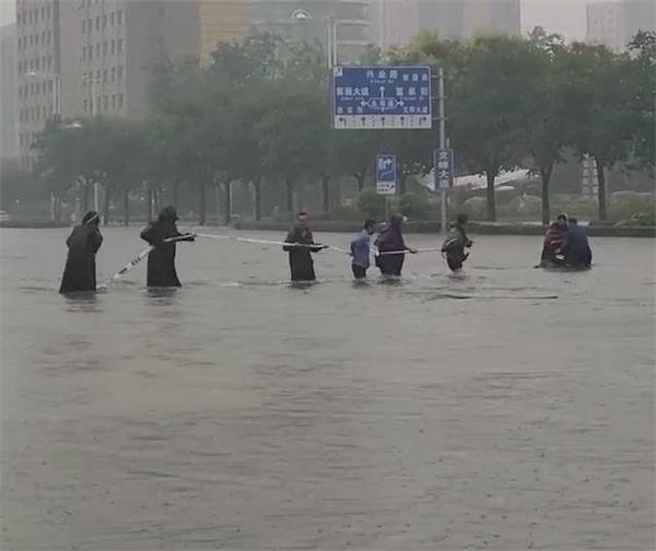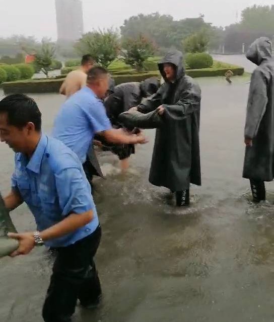 7月22日早6時(shí)許,汛情肆虐,雨越下越大,寬闊的安陽(yáng)市東區(qū)文峰大道水深過膝,儼然變成了一條奔涌的河流。安陽(yáng)市事務(wù)管理局在周福林副局長(zhǎng)的指揮下,緊急啟動(dòng)防汛救災(zāi)應(yīng)急處置預(yù)案,各防汛突擊小組分工明確,責(zé)任到人,全力投入抗洪戰(zhàn)斗。在南大門值守的駐市黨政大樓保安員在中隊(duì)長(zhǎng)戶永豐帶領(lǐng)下搬運(yùn)沙袋剛構(gòu)筑好攔水壩,還沒來(lái)得及歇口氣,忽然聽到一女子“救命”的呼救聲。隊(duì)員們循聲望去,只見路上洶涌的激流中沖過來(lái)一個(gè)人,那人想站又站不起來(lái),在水中翻滾著由西向東順流而下。