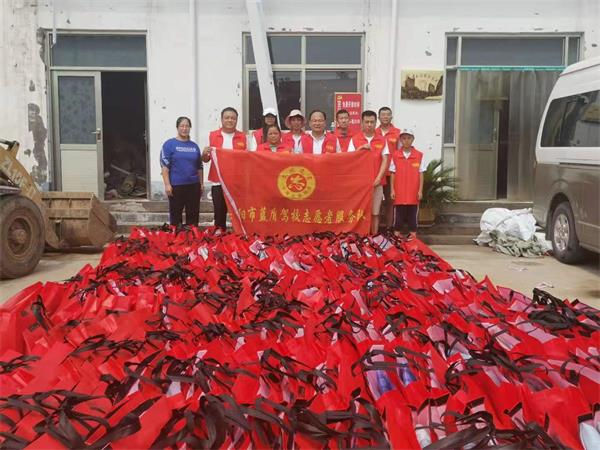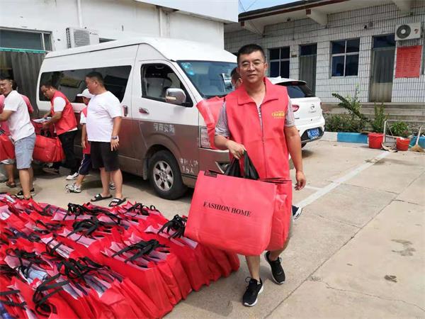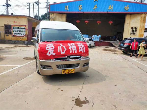 8月1日上午10時,藍(lán)盾駕校的中巴車載著350條夏涼被駛?cè)胧転?zāi)嚴(yán)重的殷都區(qū)曲溝鎮(zhèn)陳家井村委會,為村民們送來了急需的災(zāi)后生活用品。