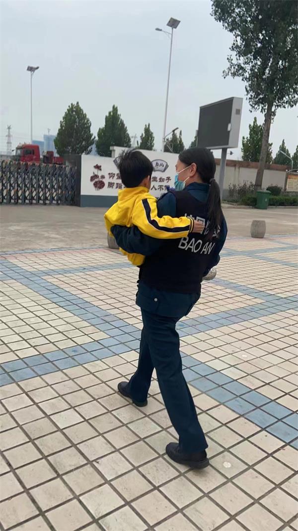 10月26日上午10:40分,外國語小學(xué)一名學(xué)生在學(xué)校不慎把腳扭傷,請(qǐng)假后自己出來走到教學(xué)樓大廳臺(tái)階處時(shí)下臺(tái)階有點(diǎn)吃力,人防四大隊(duì)駐安陽外國語小學(xué)保安李丹看到后迅速上前,征得學(xué)生同意后抱起學(xué)生,送到學(xué)校門口等候家長(zhǎng)來接,當(dāng)時(shí)抱起學(xué)生時(shí)被學(xué)校老師看到,拍下照片發(fā)到外國語小學(xué)教師群里,得到了學(xué)校全體老師以及校領(lǐng)導(dǎo)的好評(píng)。