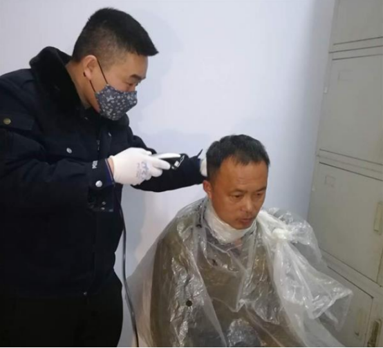 由于新冠肺炎疫情影響,全市理發(fā)店都沒有開門營業(yè),從大年三十到現(xiàn)在,技防分公司持續(xù)奮戰(zhàn)在一線崗位的隊員頭發(fā)都比較凌亂,嚴重影響了公司對外形象。同樣堅守在一線崗位的技術(shù)中隊隊長張燕超,看在眼里,急在心里,盤算著為同事們剪剪頭發(fā),讓他們輕松上崗。于是,他自費購買了理發(fā)工具,在做好消毒防護的前提下,利用閑暇時間為同事剪起了頭發(fā)。沒有遮布,他就地取材,用塑料袋代替裹在隊友身上。隨著推剪的嗡嗡聲,隊友們原本蓬亂的頭發(fā),經(jīng)他巧手打理,變得整整齊齊,人也顯得精神多了。