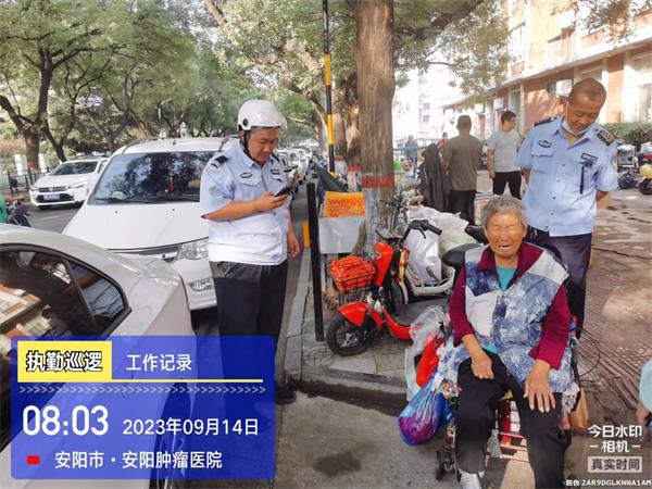 當(dāng)天早上8時(shí)許,駐北關(guān)區(qū)巡防隊(duì)員高亮、王曌執(zhí)行路面治安防控任務(wù),當(dāng)巡邏至洹濱北路腫瘤醫(yī)院門口時(shí),看見(jiàn)一老人向路人招手,但沒(méi)有人搭腔。于是,他們趕過(guò)去查看情況。經(jīng)詢問(wèn),得知老人走失找不到回家的路。詢問(wèn)其家人電話,家是哪里的,老人也說(shuō)不明白。于是王曌便報(bào)告了110,等110到現(xiàn)場(chǎng)說(shuō)明情況,移交給了民警處理。