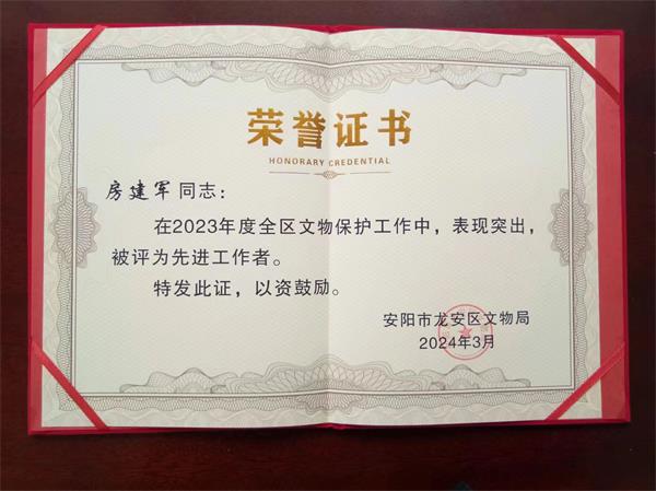日前,公司人防二大隊(duì)駐龍安區(qū)文物局房建軍同志榮獲“全區(qū)文物保護(hù)先進(jìn)工作者”,受到龍安區(qū)文物局的表彰。消息在人防隊(duì)伍不脛而走,同事們紛紛為他點(diǎn)贊。