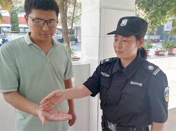 國(guó)慶節(jié)放假前夕,安陽(yáng)市幸福路中學(xué)門口上演了一幕溫暖人心的場(chǎng)景。人防三大隊(duì)派駐該校保安高美麗如往常一樣堅(jiān)守在下午入學(xué)的“護(hù)學(xué)崗”,一邊引導(dǎo)送學(xué)車輛有序通行,一邊提醒學(xué)生安全入校。在疏導(dǎo)完高峰人流后,例行巡查校門口區(qū)域時(shí),于人行橫道旁發(fā)現(xiàn)一條精致的金項(xiàng)鏈,鏈身鑲嵌的吊墜完好無(wú)損,初步判斷價(jià)值不菲。