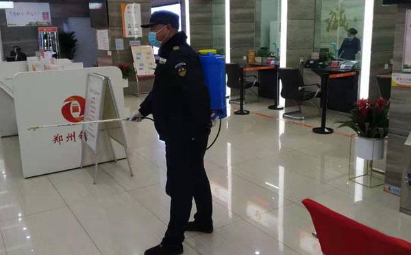 近期,多地新冠肺炎疫情出現(xiàn)多點、零星、散發(fā)態(tài)勢,根據(jù)上級要求,人防一大隊駐鄭州銀行保安班在中隊長司留志帶領下,積極響應銀行防疫工作要求,做好疫情防控工作。隊員每天做好個人衛(wèi)生,佩戴口罩上崗。他們認真測量進入銀行辦理業(yè)務的每位客戶體溫,提醒客戶佩戴口罩、登記信息。銀行下班后,隊員對銀行營業(yè)廳對外服務窗口進行全面消毒,為到銀行辦業(yè)務的客戶創(chuàng)造了一個安全的環(huán)境,受到客戶單位主要領導的夸獎。