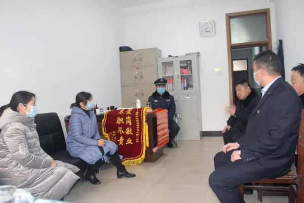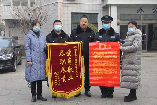 2021年1月22日上午,公司大院迎來兩位客人,文峰區(qū)東門小學(xué)校領(lǐng)導(dǎo),她們專程趕到公司送錦旗和表揚(yáng)信,感謝人防一大隊保安員張躍洪兢兢業(yè)業(yè)為東門小學(xué)服務(wù),確保師生安全。