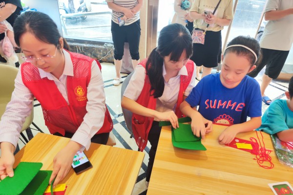 緊接著,志愿者們和孩子們共同制作了紅軍包來傳承抗戰(zhàn)精神,社區(qū)的孩子為退役老兵佩戴紅領(lǐng)巾,表達(dá)他們對先輩當(dāng)年保衛(wèi)祖國英勇戰(zhàn)斗的敬意。