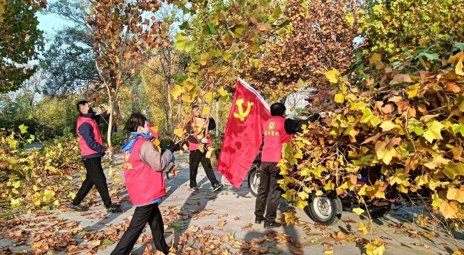 上午8點15分,黨員干部身著志愿者紅馬甲,手擎黨旗來到訓(xùn)練場,大家開始分頭行動,有的騎三輪運送樹枝,有的往車上擺放,大家干的熱火朝天,石榴樹滿樹枝都是刺,楊樹下來的枝干非常碩大,大家或小心翼翼或用盡全力,進過兩個半小時的努力,將小車訓(xùn)練場上樹枝清理完畢。下午2點15分,大家又重新集合,開始訓(xùn)練場樹葉清理工作。直到下午5點,大家終于將訓(xùn)練場整修一新。