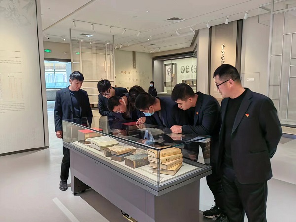 在“中國(guó)文字博物館”二期“徽文館”,黨員干部們依次參觀了“字書(shū)瓊林”“說(shuō)文解字”“詞典類(lèi)”等專(zhuān)題展區(qū),詳細(xì)了解了民俗文化中所蘊(yùn)涵的漢字文化、古文字從古至今的研究成果,從歷代書(shū)法名家的名作中感悟漢字書(shū)法藝術(shù)的菁華。