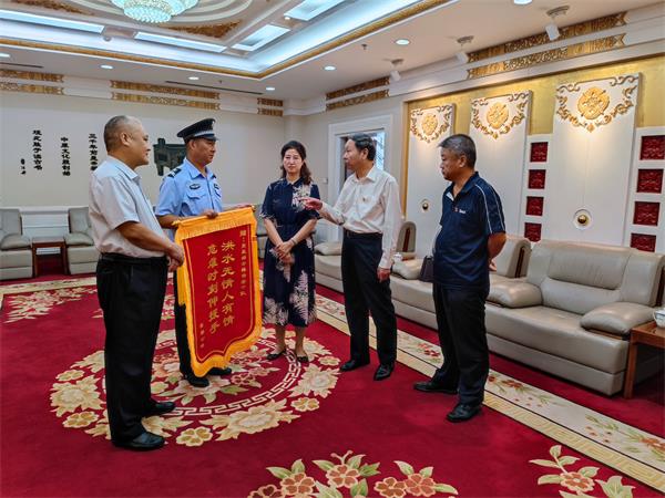 2021年7月28日下午3點,“感謝你們,我這條命是你們撿回來的!”安勤公司員工曹運玲拿著“洪水無情人有情,危難時刻伸援手”的錦旗在市黨政綜合大樓一樓會客室送到市黨政綜合樓保安中隊中隊長戶永豐手中,感謝他們的救命之恩。安陽市機關(guān)事務中心、三級調(diào)研員陳紹華,機關(guān)事務中心、保衛(wèi)科長孫文勝,安陽市安勤商務公司董事長兼總經(jīng)理劉全喜;安勤商務公司副總經(jīng)理王軍;安陽經(jīng)開集團黨委委員、副總經(jīng)理劉志霞,公司黨委委員、副總經(jīng)理魏東,總經(jīng)理助理、人防分公司經(jīng)理李向陽,參加此次活動。