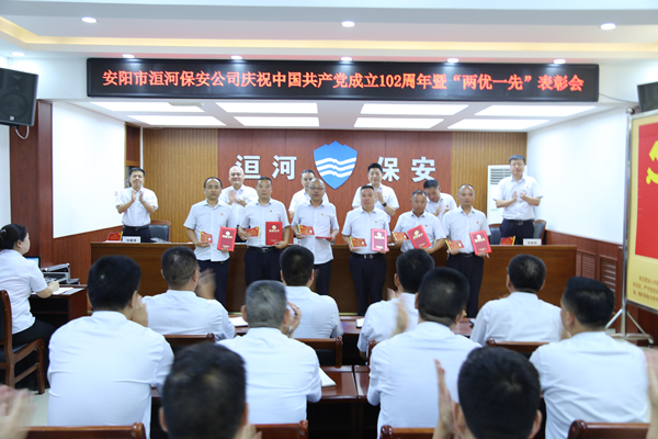 為慶祝中國共產黨成立102周年,全面貫徹落實黨的二十大精神,激勵廣大黨員堅定信念、踔厲奮發(fā)、勇毅前行。7月23日,公司隆重召開慶祝中國共產黨成立102周年暨“兩優(yōu)一先”表彰會,黨委書記、董事長王高峰出席會議并講話,黨委副書記、監(jiān)事長張錫軍,黨委委員、總經理魏東,黨委委員楊克忠,黨委委員、副總經理孫國濤、李樞林,各黨支部書記、副書記,各部門負責人,受到表彰人員以及2023年度預備黨員參加會議。會議由張錫軍主持。 大會首先舉行預備黨員佩戴黨徽儀式,王高峰同志向新黨員表示祝賀,親手為2023年度預備黨員代表佩戴黨徽,希望新同志不辜負黨組織的期望,無愧于共產黨員的光榮稱號。 接著,在王高峰同志帶領下,面向鮮紅的中國共產黨黨旗,18名新黨員舉起右拳、莊嚴宣誓,許下錚錚誓言。全體老黨員一同重溫入黨誓詞,齊憶初心使命。 隨后,魏東同志宣讀《中共安陽市洹河保安服務有限責任公司委員會關于表彰2023年度優(yōu)秀共產黨員、優(yōu)秀黨務工作者、先進黨支部的決定》,《“學習二十大、筆墨頌黨恩”書法比賽獲獎名單》。黨委領導班子為優(yōu)秀共產黨員代表、優(yōu)秀黨務工作者代表、先進黨支部頒發(fā)了榮譽證書。 最后,王高峰同志代表公司黨委向奮戰(zhàn)在崗位一線上的廣大黨員致以節(jié)日的問候,向受到表彰的先進集體、個人以及2023年度新黨員表示熱烈祝賀。王高峰強調,各黨支部和廣大黨員要以先進為榜樣,切實把思想和行動統(tǒng)一到公司黨委的各項決策部署上來。 王高峰要求,不管是新黨員還是老黨員,都要時刻牢記入黨誓詞,時刻牢記黨員身份。一是始終用先進性純潔性的要求修煉自己,堅持用黨性修養(yǎng)凈化靈魂,大力弘揚黨的優(yōu)良傳統(tǒng);二是始終用“五個過硬”的要求強化自己,要通過“五個過硬”標準延伸,爭做“五個干部”;三是始終用擔當作為的要求激發(fā)自己,全體黨員干部要圍繞全年“拼經濟”總目標,強化創(chuàng)新思維、強化主動擔當、強化工作合力;四是始終用全面從嚴治黨的要求加強黨建,堅決落實中央八項規(guī)定精神,持續(xù)加強警示教育、廉政教育,推動全面從嚴治黨向縱深發(fā)展。 王高峰指出,作為在黨旗下成長起來的國有企業(yè),35年來,洹河保安公司始終牢記初心和使命,一路披荊斬棘、砥礪奮進,向黨和全體職工交上了一份合格答卷,今天的成績屬于每一個洹河保安人,明天的成功還需大家共同努力。他希望,各黨支部、全體黨員充分發(fā)揮“一個支部就是一座堡壘”和“一名黨員就是一面旗幟”的作用,勠力同心、攻堅克難,圓滿完成年度的各項工作任務,以優(yōu)異成績踐行黨的二十大精神,推動洹河保安公司再上新臺階。