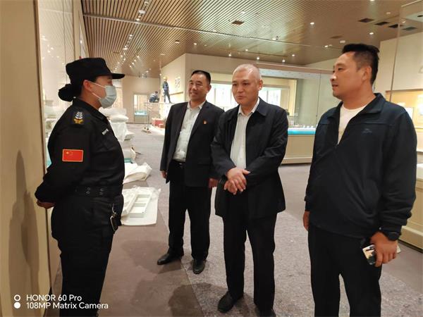 在殷墟博物館,魏東拜訪了殷墟博物館黨總支書記、常務副館長趙清榮和副館長徐河建,深入了解館方需求以及安保工作中的不足之處。趙清榮對特保大隊殷墟中隊認真負責的工作態(tài)度給予了充分肯定。魏東表示,公司將按照博物館領(lǐng)導要求和合同約定,全力以赴做好新展館開館前的各項安保工作。隨后,魏東來到殷墟新展館,認真查看駐點勤務情況,詳細了解特保隊員的工作環(huán)境和思想動態(tài)。魏東強調(diào),目前新展館處于施工沖刺和前期布展的關(guān)鍵階段,特保隊員一定要克服困難,履職盡責,為新展館順利開館提供安全保障。