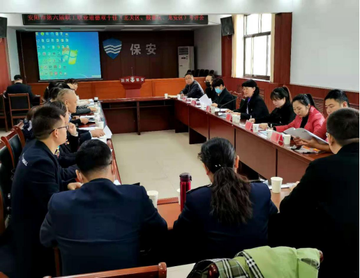 在“十佳單位”候選單位考評(píng)會(huì)上,匯報(bào)代表通過一件件為群眾服務(wù)的實(shí)事,講述著單位在踐行群眾路線、社會(huì)主義核心價(jià)值觀及提升職工職業(yè)道德建設(shè)水平建設(shè)中取得的成果。其中我公司作為第六屆職工職業(yè)道德“雙十佳”的申報(bào)單位,用生動(dòng)全面的PPT以及現(xiàn)場(chǎng)解說的形式在領(lǐng)導(dǎo)和各區(qū)代表面前呈現(xiàn)出洹河保安的良好形象。王高峰就公司開展“一日捐”、“金秋助學(xué)”、關(guān)愛職工、社會(huì)公益活動(dòng)、助力扶貧、勞動(dòng)競(jìng)賽等方面向考評(píng)組進(jìn)行匯報(bào),受到了市總領(lǐng)導(dǎo)和各區(qū)參賽單位的贊揚(yáng)和好評(píng)。