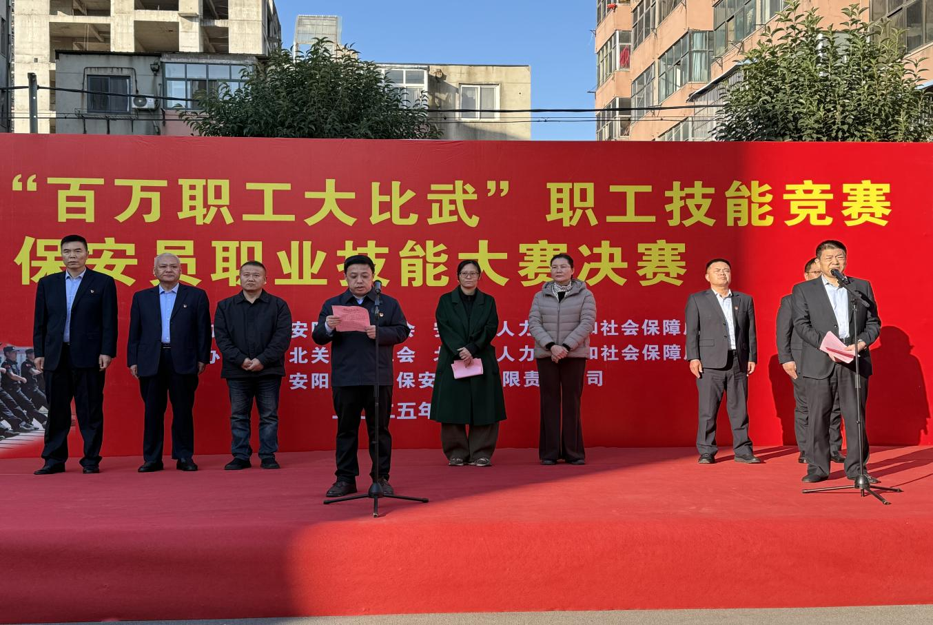 為全面展現(xiàn)全市保安隊(duì)伍的專業(yè)素養(yǎng)和精神風(fēng)貌,11月19日上午,安陽(yáng)市“百萬(wàn)職工大比武”保安員職業(yè)技能大賽決賽在公司后院成功舉辦。公司黨委書(shū)記、董事長(zhǎng)左長(zhǎng)虹出席大賽開(kāi)幕式并致辭,北關(guān)區(qū)總工會(huì)常務(wù)副主席薛梅等相關(guān)單位領(lǐng)導(dǎo)蒞臨指導(dǎo),公司黨委班子成員參加活動(dòng)。開(kāi)幕式由公司黨委副書(shū)記、監(jiān)事長(zhǎng)、工會(huì)主席張錫軍主持。