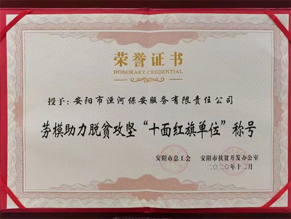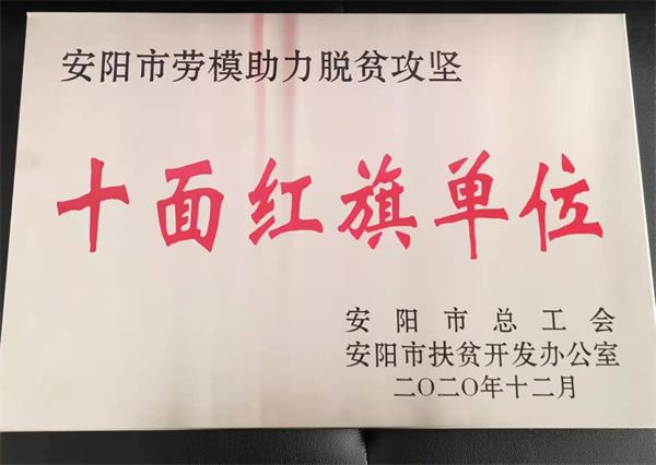 公司榮獲安陽市勞模助力脫貧攻堅“十面紅旗單位”榮譽稱號