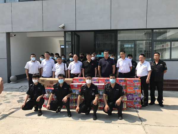 2021年8月3日早上,公司領導張錫軍、岳子迪、高代獻、楊克忠、張合印、劉東杰等走訪慰問守押九大隊全體干部職工,并送來了方便面、火腿腸、面包、榨菜、礦泉水等物資,并向大家致以誠摯的問候,對在一線隊員表示慰問,對守押九大隊積極應對特大暴雨的部署和行動表示肯定,詳細了解大隊的防汛搶險和一線隊員生活保障情況,叮囑隊員在確保自身安全的前提下,秉承生命至上的宗旨,壓實責任,堅持值守,繼續(xù)發(fā)揚不怕吃苦,艱苦奮斗,勇于擔當?shù)木瘢龊梅姥垂ぷ?,隱患排查整改工作,確保槍支彈藥、車輛、金庫的安全。