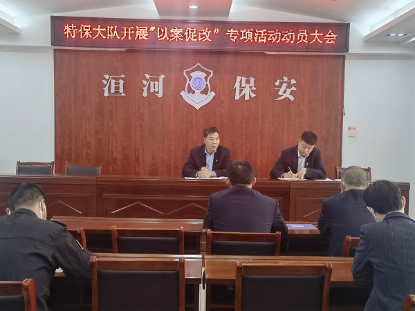 為認(rèn)真學(xué)習(xí)貫徹公司“以案促改”活動(dòng)方案精神,3月14日下午,特保大隊(duì)在公司南二樓會(huì)議室召開班長(zhǎng)以上骨干動(dòng)員會(huì)。大隊(duì)長(zhǎng)李樞林對(duì)專項(xiàng)活動(dòng)大隊(duì)方案進(jìn)行部署,總經(jīng)理助理趙潤(rùn)平參加動(dòng)員會(huì)并提出具體要求。