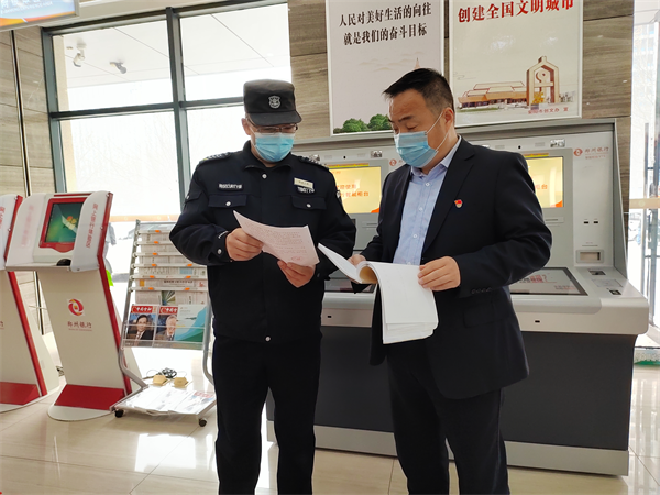 3月30日上午,人防分公司政委馮文峰在一大隊(duì)黨支部書(shū)記聶紹軍陪同下到文峰區(qū)巡防隊(duì)、銀杏南校、商頌小學(xué)、鄭州銀行等崗點(diǎn)檢查指導(dǎo)“以案促改”工作。