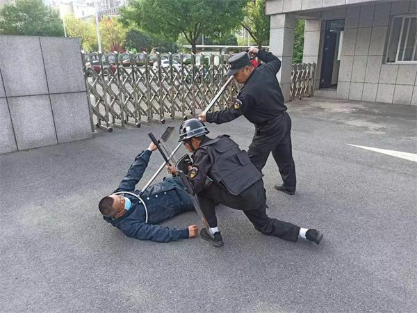 為做好這次防恐預(yù)案演練,人防一大隊領(lǐng)導(dǎo)和郵局保安班隊員一起,對預(yù)案方案進行了細化,從場景設(shè)置到人員安排,從道具準備到過程節(jié)點把握都做了詳細安排和部署。4月13號上午8點,郵局保安班一場外來人員到郵局機關(guān)大院鬧事防恐演練開始,保安員正在值班中間,從外面進來兩名陌生人員想進入大院,其中一名保安隊員上前詢問兩名陌生人員辦什么事,兩名陌生人員突然從身上掏出兇器,就要強行闖卡。保安見情況不妙,馬上用對講機呼喊隊員帶防爆器材過來,這期間,這兩名陌生人員拿著兇器在門口鬧事,保安隊員又及時打電話通知保衛(wèi)科,讓各科室把門鎖好以防進入樓層。兩名保安帶著防爆叉以及盾牌阻止陌生人員違法行為,經(jīng)過一番搏斗,終于制服了兩名陌生人員,然后向公安機構(gòu)報警。