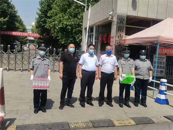 今年人防分公司負(fù)責(zé)市區(qū)、湯陰、安陽縣18個高考考點(diǎn)的安保工作。6月7日至6月9日,李向陽、馮文峰來到各考點(diǎn)檢查慰問高考執(zhí)勤隊員,聽取了考點(diǎn)負(fù)責(zé)人工作匯報。李向陽要求各大隊參加高考考點(diǎn)安保人員嚴(yán)肅紀(jì)律,文明執(zhí)勤,在工作中要注意隊容風(fēng)紀(jì),加強(qiáng)疫情防控,嚴(yán)格防疫制度,認(rèn)真落實(shí)各項防疫措施,遇到突發(fā)情況,保持冷靜,果斷處置。馮文峰叮囑隊員們天氣炎熱,注意身體,保持良好的執(zhí)勤狀態(tài),充分展示洹河保安的良好形象,確保高考安保工作有序進(jìn)行。