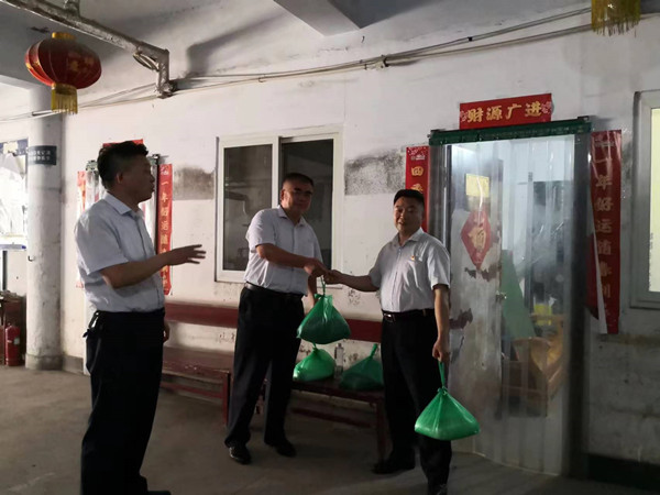 6月23日上午,守押分公司領(lǐng)導(dǎo)韋洪東、張新平,帶著綠豆、白糖等一批防暑降溫物資,代表公司黨委和分公司的關(guān)懷到守押三大隊進行慰問。