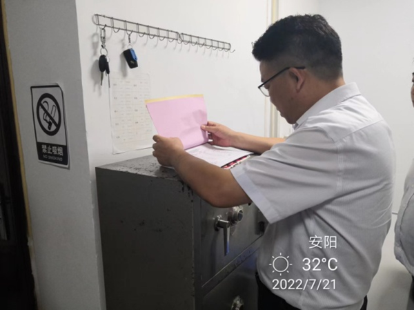 分公司領(lǐng)導(dǎo)張新平、韋洪東分別深入到七大隊的臨淇、建行、農(nóng)商行等中隊進(jìn)行了工作檢查,在檢查中,他們統(tǒng)一檢查了各中隊的日常臺賬、車輛、守庫室等,詳細(xì)查看了隊員的學(xué)習(xí)記錄,查看了今年公司“以案促改、鄭州7.20災(zāi)害追責(zé)和能力作風(fēng)建設(shè)年”等方案的開展和轉(zhuǎn)段學(xué)習(xí)情況,檢查了防疫情況登記。在守庫室,不但查看了守庫室的各項設(shè)備及衛(wèi)生情況,還查看了押運(yùn)登記本和槍支領(lǐng)取交接本的登記情況。張新平指出,對比上一次的例行檢查,整體工作有了很大的改觀,好的方面要保持下去,對于檢查出的短板,要盡快的整改,確保守押各項工作安全運(yùn)行。