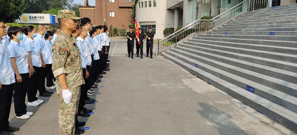 迎著朝陽,守押五大隊聯(lián)合建設(shè)銀行安陽分行在辦公大樓門前廣場舉行了升國旗儀式。