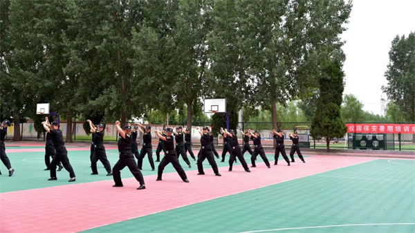 為保障校園安全穩(wěn)定,全面檢驗(yàn)校園保安暑期培訓(xùn)成果。8月20日上午,人防四大隊(duì)在安陽市外國語小學(xué)舉行殷都校園保安暑期培訓(xùn)大練兵成果匯報(bào)展示。殷都區(qū)教育局局長王景產(chǎn),公司黨委委員、副總經(jīng)理孫國濤,人防分公司經(jīng)理周衛(wèi)國,殷都區(qū)教育局安全科王國威科長應(yīng)邀觀摩?;顒?dòng)由人防四大隊(duì)大隊(duì)長陳志軍主持。