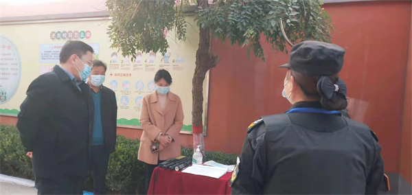 檢查中,保安員嚴(yán)格落實疫情防控規(guī)定,認(rèn)真查看督導(dǎo)組人員場所碼、核酸證明碼、健康碼,并進(jìn)行消毒測溫登記。教育局劉局長對保安人員是否持證上崗和保安八件套進(jìn)行了細(xì)致詢問。