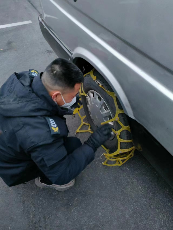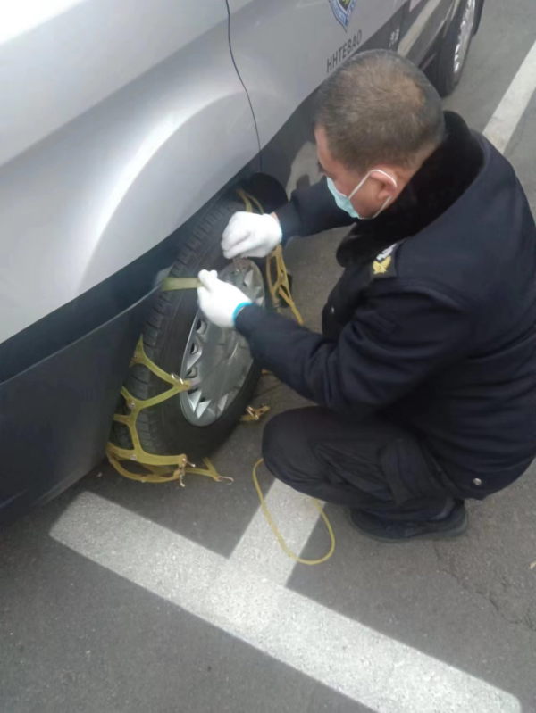 演練現(xiàn)場,大隊領(lǐng)導(dǎo)從防滑鏈的安裝、使用方法、冬季行車注意事項及正確應(yīng)對冰雪等惡劣天氣防范措施等方面進行詳細(xì)講解。各車組人員按照規(guī)范程序,將防滑鏈安裝到車輛輪胎上,然后用繃帶將防滑鏈交叉固定,確保車輛在運行中防滑鏈更加牢固。