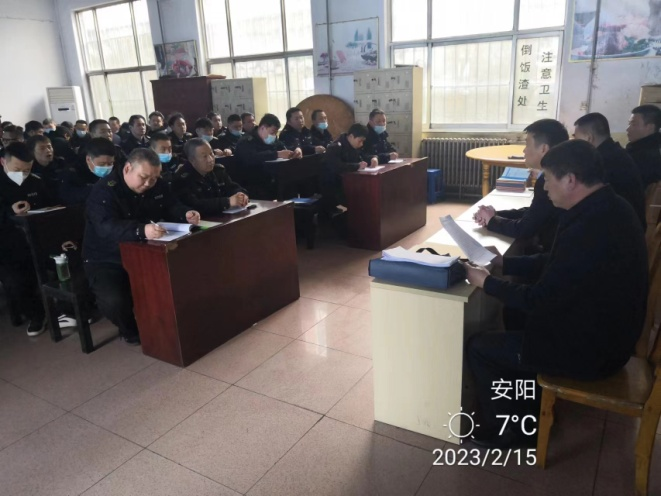 2月15日,公司黨委委員、副總經(jīng)理李樞林,守押分公司副經(jīng)理王洪亮、韋洪東一行到守押七大隊對中層干部進行2022年度民主測評。守押七大隊全體隊員參加測評會。