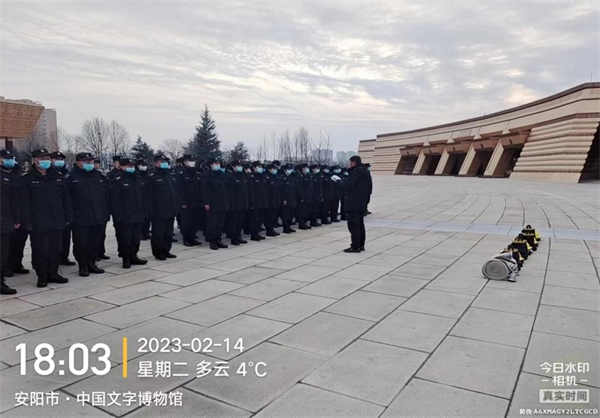 冬春交替,為有力遏制和預(yù)防火災(zāi)的發(fā)生,為進(jìn)一步加強(qiáng)隊(duì)員們的安全防火意識(shí),提升其在處理突發(fā)事件過(guò)程中的協(xié)調(diào)配合 能力,2月14日下午,特保大隊(duì)駐中國(guó)文字博物館中隊(duì)組織全體隊(duì)員開(kāi)展了消防滅火演練。