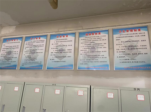 近日,為加強隊伍規(guī)范管理,守押五大隊結(jié)合守押工作實際,制定2023年學(xué)習(xí)、請銷假、衛(wèi)生管理等制度,并將制度牌安裝在大隊的墻上。
