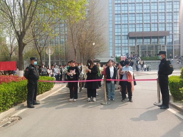 考試開始前,執(zhí)勤人員對考試區(qū)域進行封閉管理,引導考務人員車輛停放到指定區(qū)域,安排專人周邊巡防,嚴禁與考試無關的人員進入考試區(qū)域。同時,嚴格做好考生入場查驗,加強疏導引導,組織考生有序進場,嚴防踩踏事故等意外的發(fā)生。