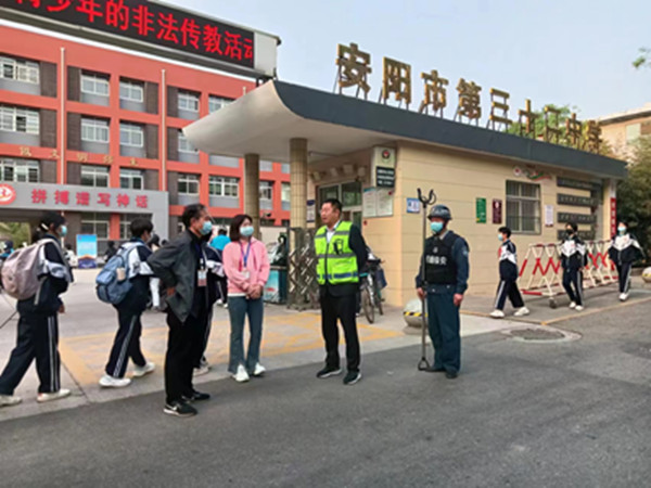 為進(jìn)一步強(qiáng)化校園安全保衛(wèi)工作,人防分公司以打造平安安陽,守護(hù)校園安全,確保校園師生安全為目標(biāo),從2023年4月18日開始,人防分公司領(lǐng)導(dǎo)及各大隊(duì)中層干部每天早7點(diǎn)至8點(diǎn)半準(zhǔn)時(shí)到各自分管的校園,疏導(dǎo)交通、維護(hù)秩序、保障師生進(jìn)校安全暢通,協(xié)助校園保安維護(hù)學(xué)校高峰期安全,為全市區(qū)校園安全保駕護(hù)航。