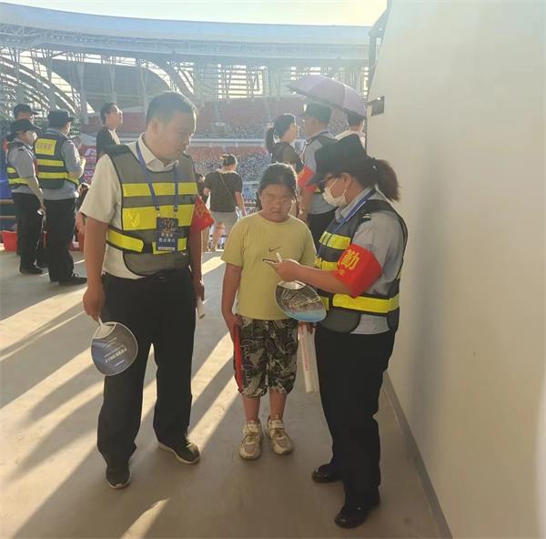 勤務實施前,大隊成立了大隊長王向煜任組長的安全保衛(wèi)工作領導小組,其他成員依照方案抽調(diào)執(zhí)勤力量,明確任務分工。勤務當天下午,各執(zhí)勤單位提前到達預定位置集結到位,整理隊伍分發(fā)裝備,按時進入執(zhí)勤崗位。除安排20人編入應急機動隊外,其余負責D1和E1區(qū)觀眾席的秩序維護。面對炎炎烈日,大家毫無怨言,依然堅守崗位,對具體崗位任務落實到具體人員。給群眾提供了力所能及的幫助。下午6點半,李會芳發(fā)現(xiàn)一女孩啼哭不止,便上前詢問。當?shù)弥⑹桥c家長走失時,報告帶隊領導尚斌,并幫她打電話聯(lián)系到家長,使其與家人團聚。