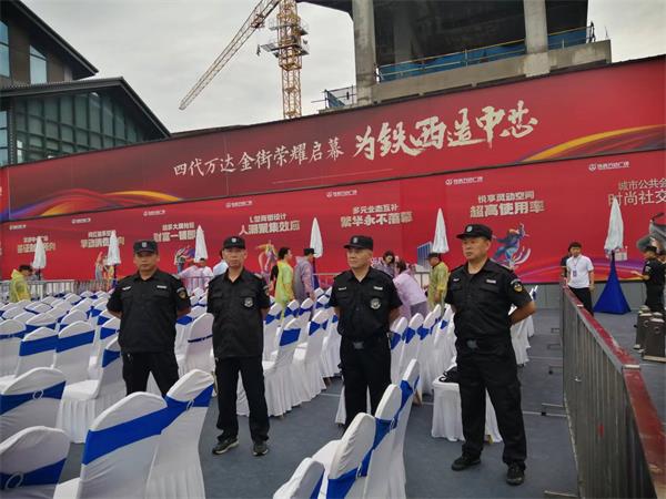 8月5日,淫雨霏霏?!八拇f達(dá)金街榮耀啟幕”儀式在鐵西萬達(dá)廣場隆重舉行。人防二大隊(duì)受關(guān)雎文化傳媒委托,出動30名保安人員,完成了此次活動的安全保衛(wèi)任務(wù),展示了洹河保安良好形象。