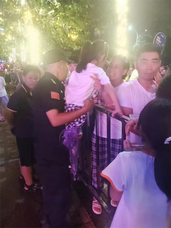 勤務(wù)實(shí)施前,大隊(duì)長王向煜和班子成員多次與甲方溝通,制訂安保方案,合理安排安保力量,明確任務(wù)分工。勤務(wù)當(dāng)天下午17時(shí),執(zhí)勤人員冒雨提前到達(dá)執(zhí)勤地點(diǎn),整理隊(duì)伍分發(fā)裝備,進(jìn)入執(zhí)勤崗位。面對惡劣天氣,大家毫無怨言,依然堅(jiān)守崗位,依照分工認(rèn)真履職。給群眾提供了力所能及的幫助。執(zhí)勤過程中,五中隊(duì)隊(duì)員趙建軍幫助走失的小女孩找到父母,使其與家人團(tuán)聚。