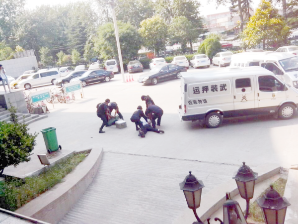 為進(jìn)一步增強(qiáng)守押隊(duì)員的安全防范意識,著力提升守押隊(duì)伍突發(fā)事件的應(yīng)急處置能力,有效防范和應(yīng)對銀行押運(yùn)車輛、金庫、營業(yè)網(wǎng)點(diǎn)各類暴力恐怖突發(fā)事件,守押二大隊(duì)于9月22日在農(nóng)業(yè)銀行安陽市行院內(nèi)組織開展了一次暴恐突發(fā)事件應(yīng)急演練。